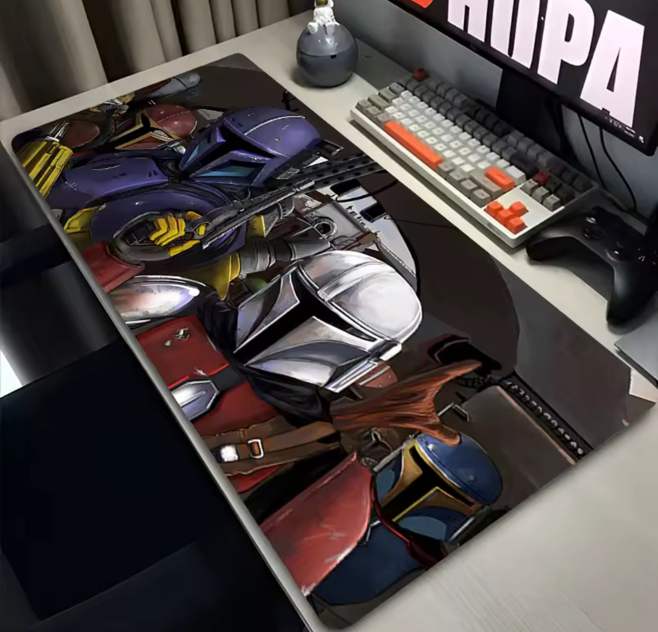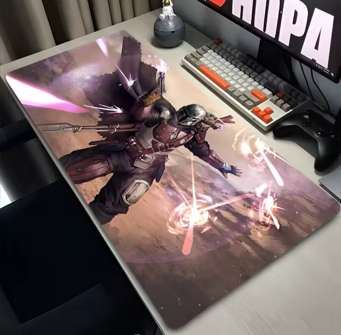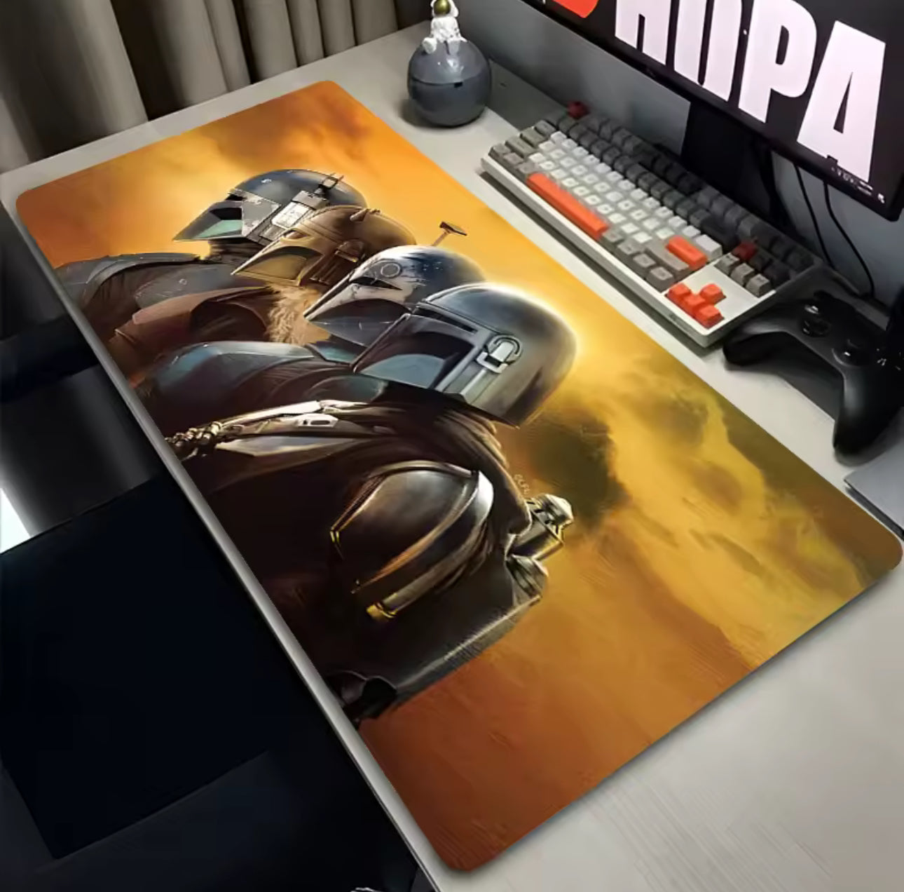 Elevate your gaming or workspace with the Mandalorian Mouse Pad — where style meets performance. Featuring a vibrant, smooth surface for precision control and a non-slip rubber base for stability, this mouse pad adds a bold touch to any desk. Whether you're a gamer, designer, or Star Wars fan, this mat brings comfort, color, and character to your setup. Check out the different design styles we have available for sale!